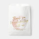 Design dispose d'un script de calligraphie moderne Merci For Celebrating With Us sur une forme d'aquarelle rose et dorée. Customisez facilement les noms et la date de l'événement spécial. Un compliment idéal à votre mariage moderne, la fête de la mariée favorise les cadeaux, et plus encore.