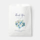 Ces fleurs blanches classiques remercient les sacs de faveur de mariage sont parfaits pour un mariage de printemps. L'élégant design floral présente des roses et des pivoines blanches et en ivoire doux, avec des touches de fleurs d'aquarelle bleu périvent et de feuillage vert. Personnalisez les sacs à gâteaux avec un bref message de remerciement, vos noms et la date. Ces sacs peuvent être utilisés pour une réception de mariage, une douche nuptiale, ou tout événement ou fête.