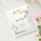 Ces sacs verts d'or tropical vous remercient mariage sont parfaits pour un mariage rustique. Le design est magnifiquement peint à la main avec de l'or tropical d'été et du feuillage vert illustrés. Customisez les sacs à gâteaux avec un bref message de gratitude, y compris vos noms et la date. Utilisez ces sacs pour compléter une réception de mariage, une douche nuptiale, tout événement ou fête. Le design sobre et élégant présente une typographie de script classique et sophistiquée en noir et blanc.
