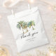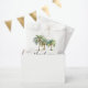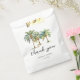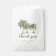 Destination estivale sacs de faveur mariage avec des palmiers tropicaux aquarelles, le titre "merci", les noms de mariée et de mariée, et votre date mariage.