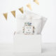 Aménagement floral aquarelle en bleu poussiéreux et taupe neutre avec cadre carré or rose cadre personnalisé mariage sacs de faveur.