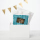 Ce design présente un arrière - plan en bois rustique bleu avec une sélection de photos de votre couple. L'arrière - plan en bois bleu rustique est complété par le texte blanc et une photo personnelle. Les tons bleus du bois créent une atmosphère nautique rustique. Elégant design de sac de faveur de mariage avec des éléments modernes. Des invitations de mariage et d'autres articles de papeterie sont également disponibles.