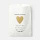 Sacs de faveur personnalisés pour la fête de mariage avec une empreinte coeur de parties scintillant d'or.Un sac de faveur de mariage simple et élégant pour vos douceurs avec message de remerciement pour montrer votre appréciation. Personnalisez avec les noms des mariés et des mariés et la date du mariage.