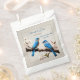 Offrez à vos invités ce charmant sac Spring Bluebirds Wedding Favor, qui comprend une douce paire de bleuets nichée au milieu de fleurs printanières douces et de délicates fleurs d'aquarelle. Élégant script et typographie moderne mettent en valeur les noms de la mariée et du marié, créant un beau souvenir pour votre célébration. Parfait pour les mariages printaniers et les thèmes inspirés de la nature, ce design apporte une touche de fantaisie et de romantisme à votre thème mariage bluebird tout en offrant une façon réfléchie d'empaqueter de petites faveurs ou des gâteries.