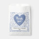 Utilisez ce design élégant pour dire "Merci pour venir" à votre événement spécial. Personnalisez facilement le texte sur le devant inférieur avec le modèle de texte fourni. Le design numérique sur la colline à l'avant a un motif de nombres aléatoires bleu et blanc avec le chiffre bleu 40 répété dans des tailles et angles variés. Il y a une forme de coeur bouffante bleue au centre, devant avec "Merci". Le devant inférieur a de la place pour, "Merci d'être venu à ma fête d'anniversaire. Une idée amusante pour les faveurs de fête pour votre 40e anniversaire, et pour toutes les occasions ou célébrations où vous êtes en vedette le numéro quarante; il suffit de changer le texte pour correspondre à l'événement.