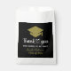 Un design noir, blanc et or pour dire merci à tous ceux qui ont envoyé leurs félicitations et célébré la réalisation du diplômé qui a obtenu son diplôme du lycée ou du collège. L'élégant design de grad est grand pour remercier ceux qui ont envoyé des félicitations et assisté à la fête de remise des diplômes. Le texte du script de calligraphie peut être customisé et personnalisé avec le nom et la classe du diplômé. Vous pouvez modifier la couleur de police, la taille de police et le type de police. Vous pouvez également modifier la couleur du graphique de remerciement et de capuchon de graduation à l'aide de l'outil de conception. Le design d'appréciation spécial est à vous de customiser et de personnaliser comme vous le souhaitez. La conception peut être transférée à d'autres produits.