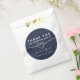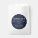 Elégant, moderne, minimaliste personnalisé marine bleu mariage merci sac de faveur avec coeur de corde en argent et script de calligraphie simple.