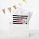 Le design du produit est composé d'un flamant avec des motifs cachemire kaléidoscopiques dans les tons rose sur le noir et blanc rayures arrière - plan. Ce design d'oiseau tropical avec texte personnalisé fait des sacs de faveur modernes et uniques.