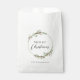 Favor bags featuring a minimalist watercolor wreath with red floral and green foliage accents. This elegant wreath frames the greeting "Merry Christmas". Easy to personalize with your family name.