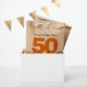 Faites de son big five oh une fête savoureuse inoubliable avec ce design moderne, qui comprend un bloc noir et orange frappant et des lettres manuscrites. Design © W.H. Sim. Voir plus sur zazzle.com/expressionsoccasions