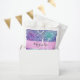 Glam violet, bleu et vert parties scintillant scintille le nom monogramme et le sac de faveur initial. Votre nom personnalisé et votre monogramme sont écrits dans un élégant script écrit à la main avec un arrière - plan rose clair. Vous pouvez modifier la couleur du texte, le style et la taille de police à l'aide de l'option personnaliser.