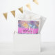 Nom monogramme irisé holographique rose, pêche et aqua, et sacs de faveur initiaux. Votre nom personnalisé et votre monogramme sont écrits dans un élégant script écrit à la main avec un arrière - plan rose. Un cadeau d'anniversaire ou de Noël parfait !