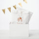Ces adorables sacs de baby shower de faveur présentent un style boho tendance et un script manuscrit branché qui dit "merci". Un arc-en-ciel peint en terre cuite et neutre est orné de fleurs d'eau de pêche et d'orange sur un arrière - plan blanc simple.
