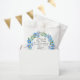 Un élégant mémorial funéraire célébration de la vie faveur sac avec la verdure et bleu aquarelle Oubliez-moi pas Fleurs.