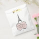 Remplissez ces mignonettes sacs de faveur avec douceurs et merci à vos invités de douche nuptiale dans le style chic parisien. Les sacs comportent une illustration de la Tour Eiffel avec le nom, le type d'événement et la date de l'invité d'honneur sur un élément d'insigne rose et noir.