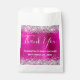Créez votre propre bébé douche merci pour les sacs de faveur. Fille fausse parties scintillant argent brillant sur le bord supérieur et le bord inférieur, sur une fausse feuille de métal brossé rose chaud style sombre. Vous pouvez également customiser les styles de police. Les couleurs principales sont le rose chaud, le fuchsia, le gris, l'argent, le noir et blanc.