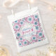 Présentant notre sac de faveur Sweet 16 personnalisable, un délicieux mélange d'élégance et de charme, parfait pour commémorer une occasion mémorable. Le sac est orné d'un design floral à main complexe, formant un cercle presque complet autour du texte central. Les fleurs sont dépeintes dans des teintes douces et pastel de rose, violet et bleu, avec des motifs détaillés qui apportent une touche de sophistication à l'ensemble. Au coeur du sac, vous trouverez le nom du célébrant, écrit avec élégance au-dessus de l’audacieux "Sweet 16". Les polices utilisées ici sont ludiques mais élégantes, encapsulant parfaitement l'esprit d'une célébration Sweet 16. Sous le texte central, il y a un message de coeur supplémentaire. Le style général du sac dégage chaleur et élégance, ce qui en fait non seulement un sac de faveur, mais un signe mémorable d'une célébration significative.