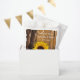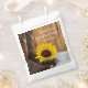 Remplissez ces charmants Country Sunflower Western Mariage Merci Favor Sacs avec les faveurs de fête ou petits cadeaux pour votre fête fiançailles, grange fête de la nuptiale ou réception de mariage. Ces sacs de remerciement rustiques chic et chic, décontractés mais classe, sont ornés d'une photo florale d'une paire de bottes de cowboy en cuir marron et de fleurs de tournesol jaune avec un arrière - plan en bois de grange marron.