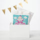 Quelle façon amusante d'honorer une future maman que de lui donner un baby shower avec le thème de Humpty Dumpty. Un rythme classique, adorable et familier de pépinière que nous aimons et adorons tous. Ce design présente un caractère Humpty Dumpty assis sur un court mur avec des fleurs et de l'herbe. Il a des joues roses et porte un costume avec une grande cravate arc. L'arrière - plan a des nuages flottants. Les couleurs sont jaune, rose et vert. Customisez de faire les vôtres.