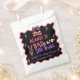 Bad Two The Bone 2nd Birthday Party Favor Sacs en rose violet et noir - Girl Second Birthday Party Décor - Elevez votre décor de fête de deuxième anniversaire et de dire merci aux invités, avec ces sacs d'anniversaire personnalisés cool, rad et rétro, parfait pour une petite fille qui tourne deux fois. Doté d'une paire de crânes de cerise rétro avec une main squelette faisant le signe de paix ou numéro 2. Avec une palette de couleurs vives et colorées inspirées des années 90 de rose vif et violet avec des touches de jaune. Parfait pour une fête d'Halloween à thème 2ème anniversaire. Customisez ces serviettes de modèle modifiables pour le 2ème anniversaire décorations avec votre propre nom.