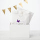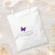 Joli sac de faveur de mariage avec des graphiques d'un papillon violet décorant une zone de texte encadrée de doodle violet blanc. Personnalisez le texte pour lire ce que vous voulez. Idéal pour tous vos besoins de noces.