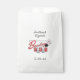 Bowling Party Favor Bags présente la typographie "Bowling Party" dans un logo rétro, de style moderne des années 50, avec boule de bowling illustrée et épingles. Comprend des éléments de bleu, rouge, blanc et gris, des points et un arrière - plan à motif diamant. Inclut le modèle pour la personnalisation personnelle.