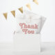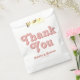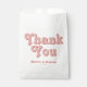 Cette audacieuse conception de sacs de faveur de mariage rose corail "merci" embrasse un thème les années 70 super, avec typographie rétro rose. Parfait pour les couples qui aiment le charme vintage avec une touche moderne, et idéal pour les mariages d'été, de boho ou d'inspiration rétro. Explorez les articles correspondants dans notre suite mariage pour compléter le look!