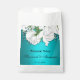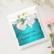 Un élégant et sophistiqué aqua sac de faveur de mariage floral, avec un aqua métallique/couleur turquoise avec un beau bouquet blanc de roses au sommet. Tous les détails peuvent être personnalisés selon vos besoins. Ce sac cadeau pour les invités de la réception de mariage serait adapté pour un mariage de jardin, événement à thème floral, mariage de boho, aqua ou mariage à thème turquoise, et plus encore.