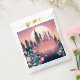 Envoyez tout le monde chez lui avec un morceau de la célébration glissé dans ces sacs de faveur, embellis par un paysage urbain captivant sous un coucher de soleil radieux, rehaussé de détails rose tendre. Le mélange de silhouettes de gratte-ciel modernes et de florales délicates fait une déclaration enchanteresse qui résonne auprès de la mariée d’aujourd’hui qui aime mélanger les thèmes contemporains avec l’élégance classique. Remplissez-les de friandises ou de petits cadeaux pour laisser une impression durable de votre douche de mariée unique.