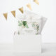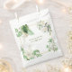 Un beau décor de verdure rustique avec des fleurs vintages blanches et un cadre doré élégant. Un sac de faveur de mariage botanique moderne avec fleurs blanches, feuilles verts et or accents idéal pour tout mariage à thème. Des invitations de mariage et d'autres articles de papeterie sont également disponibles.