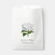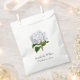 Elégant sac de faveur blanc avec joli dessin d'une hydrangée blanche. Personnalisez le texte personnalisé noir pour l'événement mariage. Idéal pour les sucreries et les bars à sucreries.