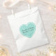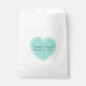Sac élégant en papier blanc avec un grand coeur vert menthe. Personnalisez le texte noir personnalisé pour votre événement mariage. Idéal pour les biscuits, le pop-corn et les barres de bonbons.