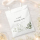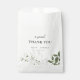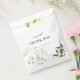 Sac de faveur de mariage moderne et élégant, conçu sur mesure, avec un design floral vert et blanc sauge, avec nom et texte personnalisés.