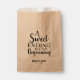 Le design comporte "A Sweet End to a new Beginning" dans une typographie de script de police moderne. Idéal pour les mariages, les douches nuptiales et les fiançailles. Préparez-les à votre buffet de bonbons ou de biscuits, ou préparez un délicieux morceau de fudge gourmand ou de menthe au chocolat. laissez votre dent sucrée vous inspirer de donner à vos invités une faveur qui fera que tout le monde parle avec plaisir du contenu de ce petit sac en papier!