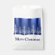 Des silhouettes d'arbre blanc sur des collines enneigées contre un ciel bleu nuit sur des sacs de Noël.