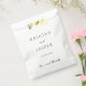 Sacs élégants pour mariage avec un design simple et minimal. Une disposition classique avec vos noms en gros caractères pour une touche moderne à ce style traditionnel. En dessous de vos noms est "amour et merci". Ce design noir et blanc peut être modifié à n'importe quelle couleur que vous choisissez dans l'outil d'édition de conception. Ces sacs de faveur personnalisés sont parfaits pour un mariage formel.