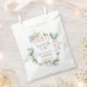 Fleurs élégantes, feuilles, dans une palette douce d'aquarelle de bleu, blanc rose et vert avec des accents d'orange ornent ce nuptiale romantique et élégant douche SAC DE FAVEUR AVEC MESSAGE MERCI ET LE NOM DE LA PONTE À ÊTRE! Ajoutez ces sacs de faveurs pour ajouter une touche personnelle à votre Mariage ou Fête des mariées ou Douche Couple. Correspondance de la collection "Fleur de floraison bleue et PInk".