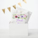 This beautiful and elegant wedding favor bag features watercolor purple flowers and foliage. The text combines handwritten script and serif fonts for a stylish and modern look. This is perfect for a spring rustic wedding.