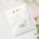 Cette élégante suite de mariage présente des motifs floraux et feuillages délicats dans un décor bleu et or poussiéreux pour un thème mariage cohésif et époustouflant. Le sac de faveur coordonné présenté ici présente une douce bordure florale d'angle, ajoutant une touche de romantisme et de sophistication à l'ensemble. Ajoutez vos noms et la date du mariage sous le texte du script d'or 'Welcome', en utilisant le modèle fourni. Recherchez ID1045 pour voir d'autres produits dans cet ensemble de conceptions mariages.