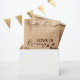 Ajoutez une touche charmante et personnelle à votre mariage avec ce sac cadeau "L'amour est dans l'air". Avec un design rustique, ce sac présente un graphique fantaisiste de grains de café et la phrase sincère “L'amour est dans l'air” en haut. Parfait pour contenir de petites douceurs comme du thé, du café ou des friandises, il est entièrement personnalisable avec le nom de la mariée et la date de l'événement pour rendre votre mariage encore plus inoubliable.