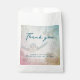 Sacs de faveur de mariage en blanc, avec design de mer vivante. Les tortues de mer et les coquillages de plage sont l'arrière - plan du texte "merci". Ajoutez les noms du couple, avec un message de remerciement en bas. Sous le design marin, il conviendra parfaitement aux couples amateurs d'océan. Servez-vous de sacs (en séries de 50) pour la réception, de grandes douches et toute fête avant le mariage.
