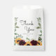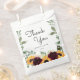 Tournesol rustique et Rose verdure Favor Sacs sont parfaits pour les cadeaux pour vos invités. Le design présente des tournesols jaune aquarelle avec des roses rouges bordeaux avec de la végétation d'eucalyptus sauge encadrant les mots "merci". Personnalisez avec les noms et la date.