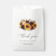 Sac de mariage Fleur de Tournesol Favor avec un bouquet rustique avec des tournesols aquarelles peints, roses rouges, fleurs violettes et verdure. Cet élégant sac de faveur est idéal pour un mariage à thème boho à l'automne / automne.