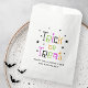 Halloween préférez les sacs avec des étoiles noires et le texte "Trick or traiter" dans une orange, violet, noir et vert, whimsical et des lettres angulaires avec un message personnalisé ci-dessous.