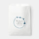 Merci à vos participants mariages avec ce sac de faveur blanc de grande taille qui présente un design simple et turquoise de couronne de coeur bleu et un script stylisé avec les prénoms de mariée et mariée imprimés en lettres noires. Personnalisez votre sac de faveur en éditant et en remplaçant les noms.