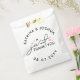 Sacs de mariage en blanc avec un design de typographie noire et des coeurs roses. Sacs de faveur de mariage mignons pour gâteries et bonbons avec un Merci doux dans une belle conception typographique. Sacs de mariage blanc avec texte noir et petits coeurs roses. Mariage traitez les autocollants de faveur en blanc, noir et rose. Mariage traite les sacs personnalisés avec vos noms et date mariage en texte courbe.