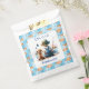 Sacs baby shower pour les faveurs. Une adorable petite aquarelle douce illustrant un petit garçon qui pêche avec un chien de chiot. Les couleurs de ces invitations sont le bleu et l'orange. Beau poisson nageant dans l'arrière - plan.