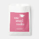 Sac moderne de remise de diplômes avec un design simple et mignon avec un grand casquette et "un cookie intelligent" dans une écriture manuscrite épaisse avec le nom du diplômé, l'année de classe et le nom de l'école en blanc sur un arrière - plan rose. La couleur arrière - plan peut être changée en n'importe quelle couleur. Ces sacs de faveur sont parfaits pour une jeune diplômée et sont une excellente façon d'ajouter une touche personnelle à vos faveurs de fête.