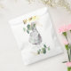 Ce sac de baby shower neutre simple mais élégant présente l'illustration d'un adorable bébé éléphant et d'une verdure d'aquarelle moderne en vert et or doux. Utilisez les champs modèle pour ajouter vos détails. Si vous souhaitez modifier le style de police, la couleur ou le placement du texte, cliquez simplement sur le bouton "Customiser plus".