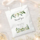 Ces sacs verts blancs automne fleuris merci mariage sont parfaits pour un mariage rustique. Le design est doté d'élégantes pivoines blanches aquarelles avec feuillage vert. Customisez les sacs à gâteaux avec un bref message de gratitude, y compris vos noms et la date. Utilisez ces sacs pour compléter une réception de mariage, une douche nuptiale, tout événement ou fête. Le design sobre et élégant présente une typographie de script classique et sophistiquée en noir et blanc.